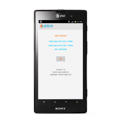 AirLink starts a web service on the device. The connection URL and a security token is required to connect back to the device from a web browser.